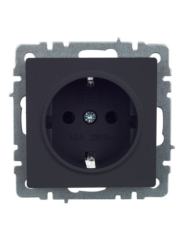 Розетка 1-м СП BRITE РС11-1-0-БрГ 16А с заземл. без защ. шторки графит IEK BR-R11-16-K53