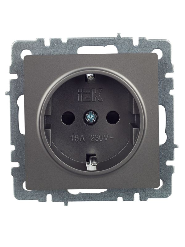 Розетка 1-м СП BRITE РС14-1-0-БрС 16А с заземл. защ. шторки сталь IEK BR-R14-16-K46