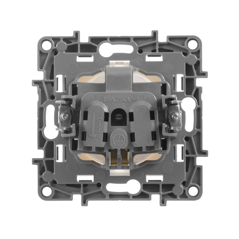 Розетка с заземлением ETIKA для скрытого монтажа. Максимальный ток 16 А, максимальная мощность 3680 Вт. Применяется в зданиях, оборудованных для повышения безопасности проводкой с заземлением (с защитным проводником).