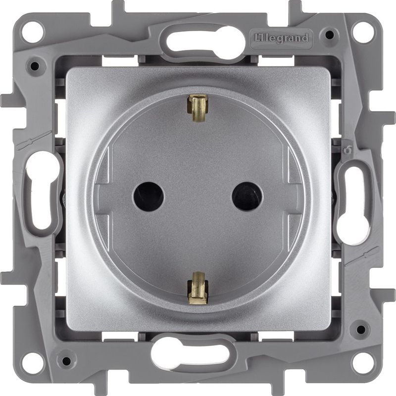 Розетка 1-м СП Etika 16А IP31 250В 2P+E с заземл. защ. шторки немецк. стандарт винт. клеммы механизм алюм. Leg 672422
