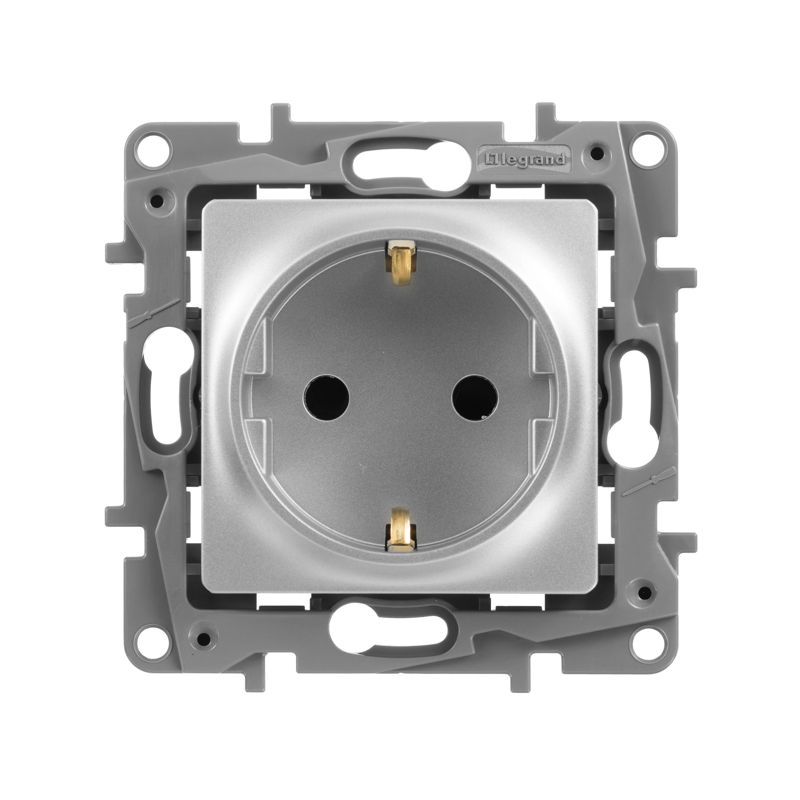 Розетка с заземлением и защитными шторками ETIKA для скрытого монтажа. Применяется в зданиях, оборудованных для повышения безопасности проводкой с заземлением (с защитным проводником). Рекомендуются к применению в квартирах и помещениях с детьми. Шторки осуществляют защитную функцию путём ограничения доступа к токоведущим контактам. Доступ открывается только при подключении вилки.