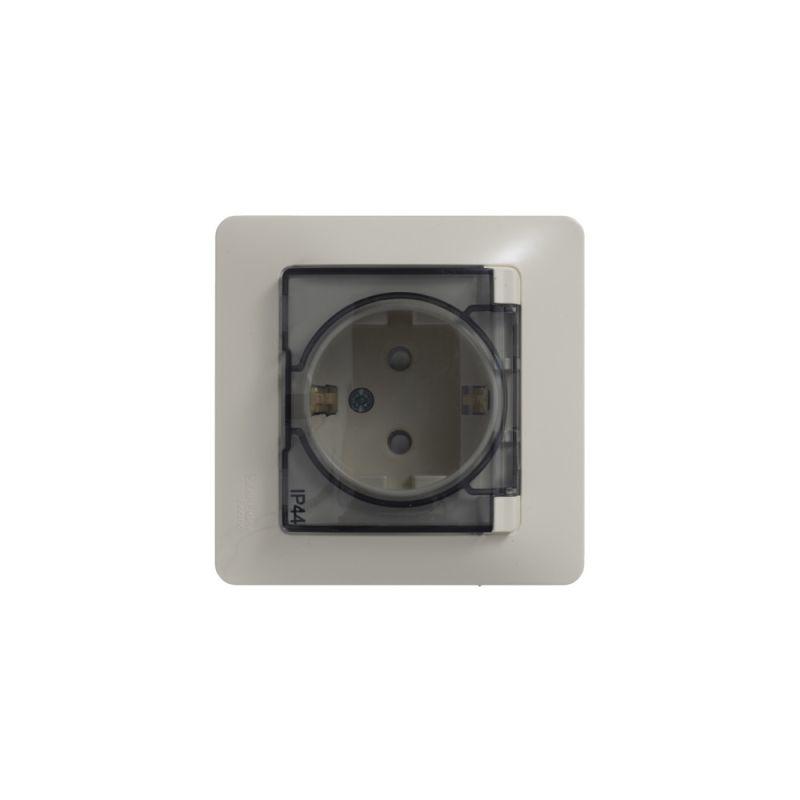 Розетка 1-м СП Glossa 16А IP44 с заземл. защ. шторки с крышкой в сборе беж. SE GSL000248