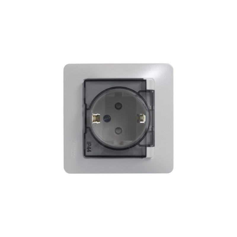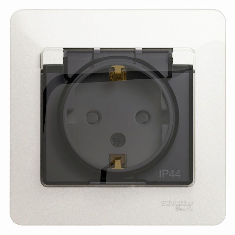 Розетка 1-м СП Glossa 16А IP44 с заземл. защ. шторки с крышкой в сборе перламутр. SE GSL000648