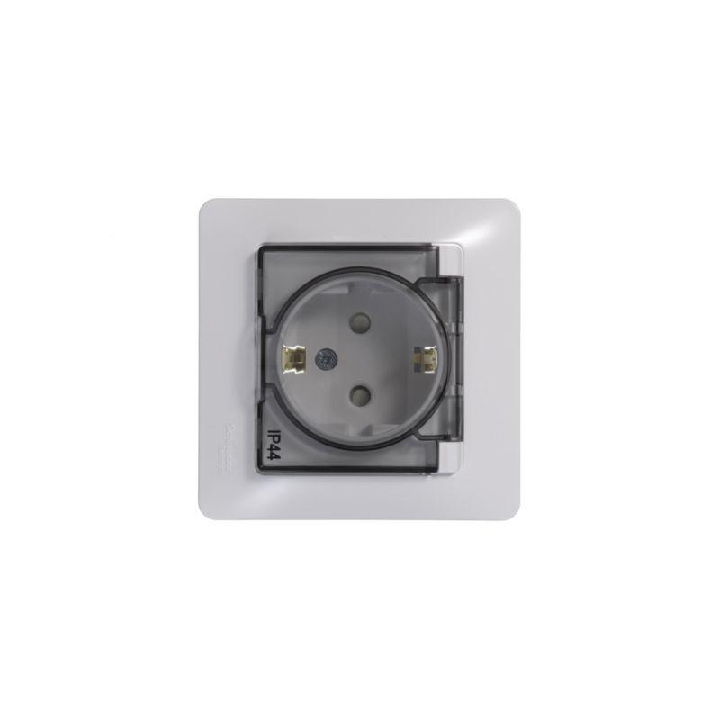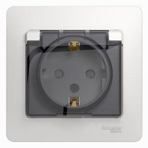 Розетка 1-м СП Glossa 16А IP44 с заземл. защ. шторки с крышкой в сборе бел. SE GSL000148
