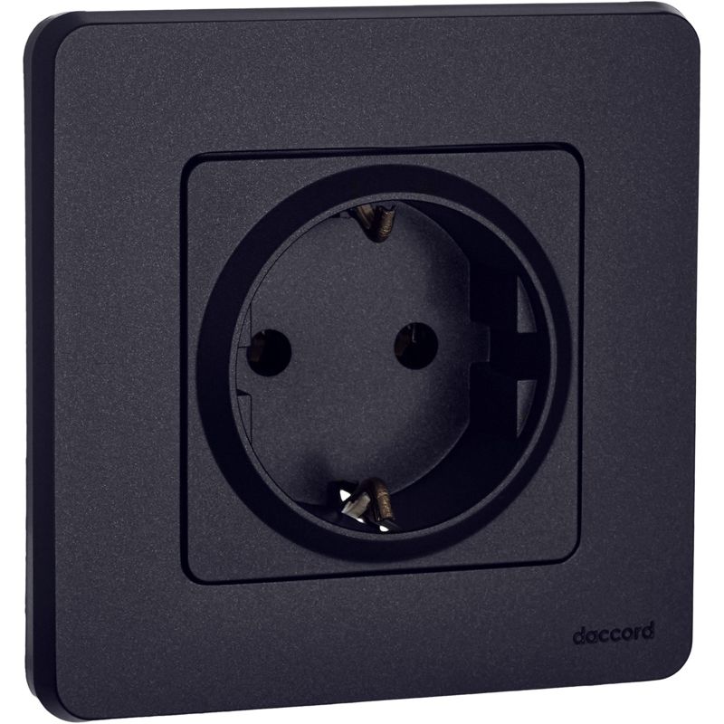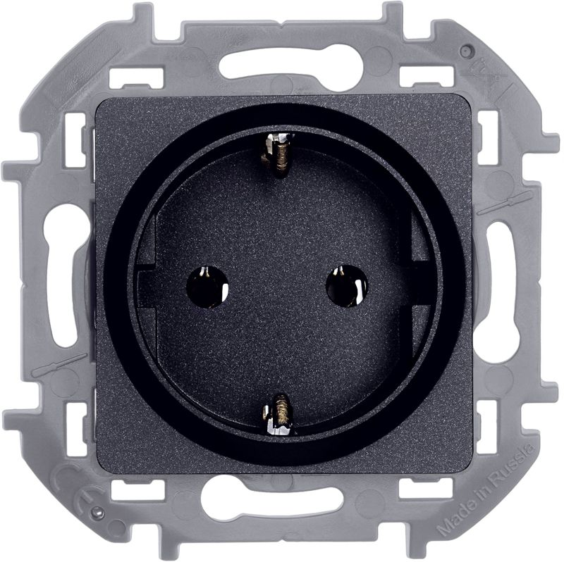 Розетка с заземлением для скрытого монтажа Inspiria, цвет "Антрацит", максимальный ток 16А, напряжение ~250В, максимальная мощность 3680Вт, винтовые зажимы. Применяется для присоединения однофазных электрических потребителей к сети переменного тока в зданиях с проводкой с заземлением (с защитным проводником).