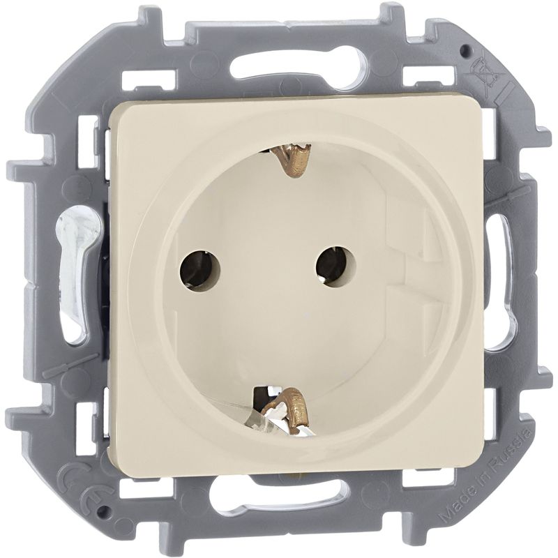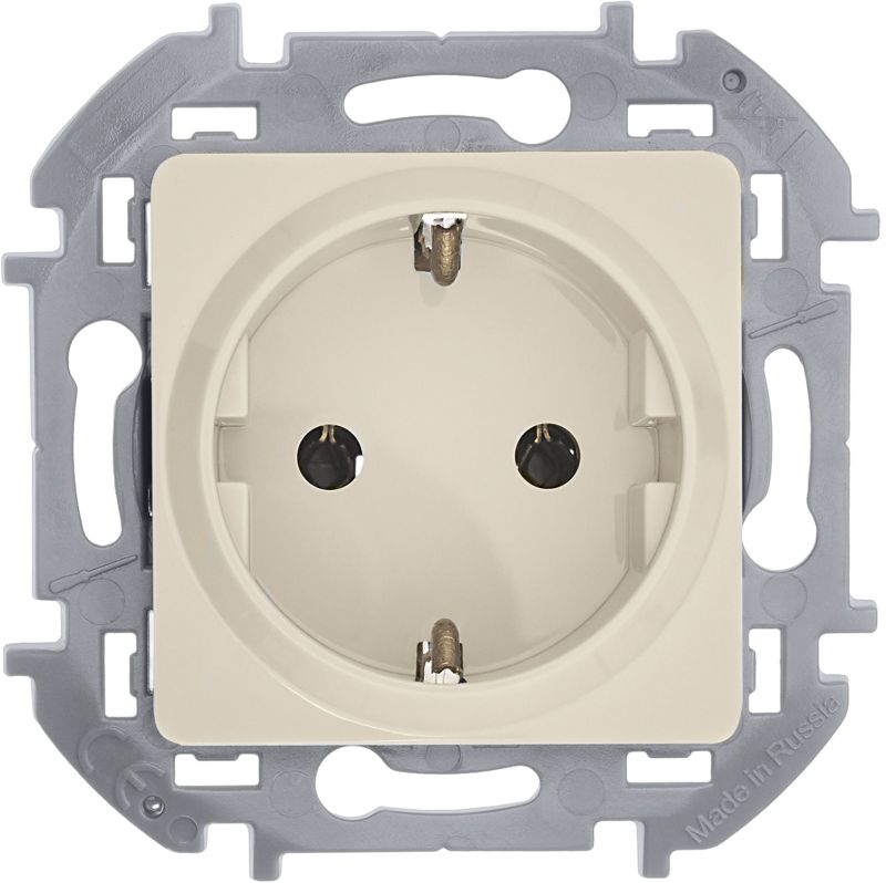 Розетка с заземлением для скрытого монтажа Inspiria, цвет "Слоновая кость", максимальный ток 16А, напряжение ~250В, максимальная мощность 3680Вт, винтовые зажимы. Применяется для присоединения однофазных электрических потребителей к сети переменного тока в зданиях с проводкой с заземлением (с защитным проводником).