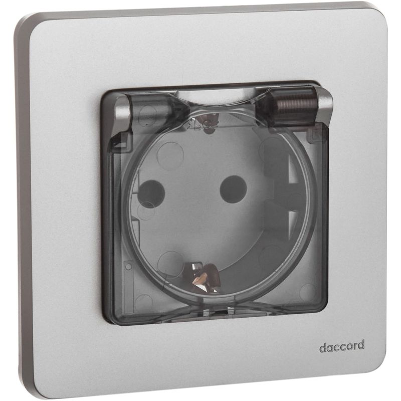 Розетка 1-м СП Inspiria 16А IP44 250В 2P+E защ. шторки с крышкой немецк. стандарт механизм алюм. Leg 673742 -