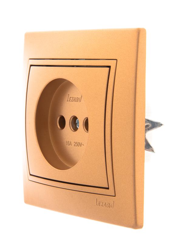 Розетка 1-м СП Mira 16А IP20 без заземл. со вставкой керамика зол. метал. LEZARD 701-1313-121 -