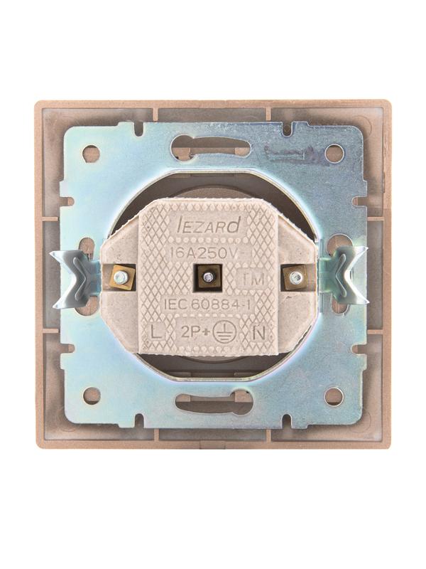 Розетка 1-м СП Mira 16А IP20 без заземл. со вставкой керамика свет. корич. перламутр. LEZARD 701-3131-121 -
