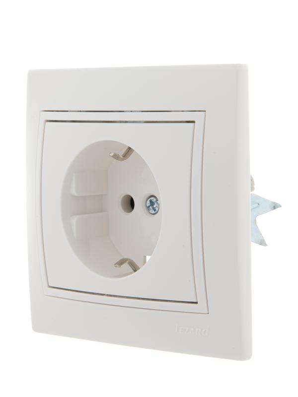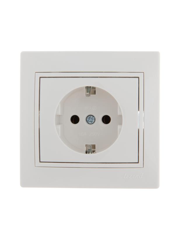 Розетка 1-м СП Mira 16А IP20 с заземл. с бел. вставкой керамика бел. LEZARD 701-0202-122 -
