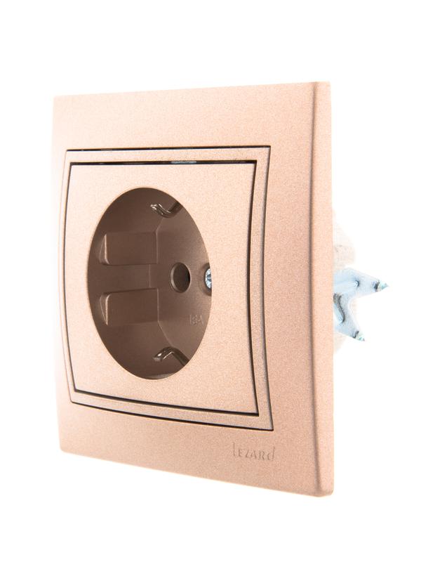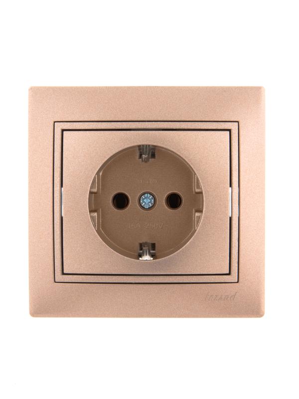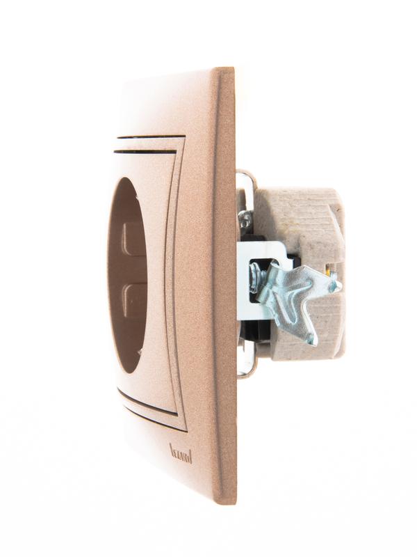 Розетка 1-м СП Mira 16А IP20 с заземл. со вставкой керамика свет. корич. перламутр. LEZARD 701-3131-122 -