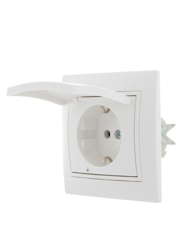 Розетка 1-м СП Мира с защ. крышкой керам. с заземл. бел./бел. Lezard 701-0202-123 представляет собой электроустановочный механизм одноместной розетки.