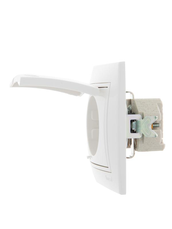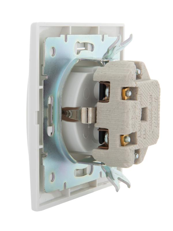Корпус представляет собой форму из негорючего пластика, шириной 90 мм, с основой белого цвета и декоративной рамкой. С откидной защитной кышкой. Основание керамическое. Подпружиненные лапки крепления обеспечивают комфортный и легкий монтаж изделия. Предусмотрена возможность установки без применения монтажной коробки.