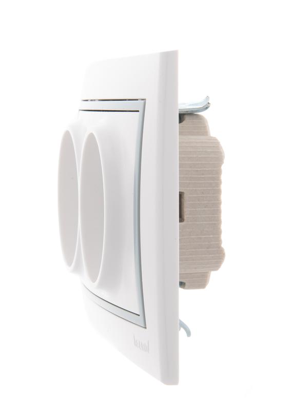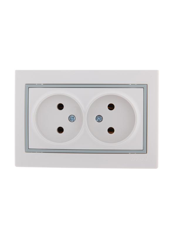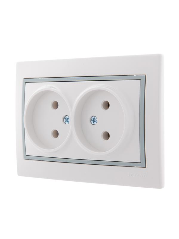Розетка 2-м СП Mira 16А IP20 без заземл. с сер. вставкой керамика бел. LEZARD 701-0215-128 -
