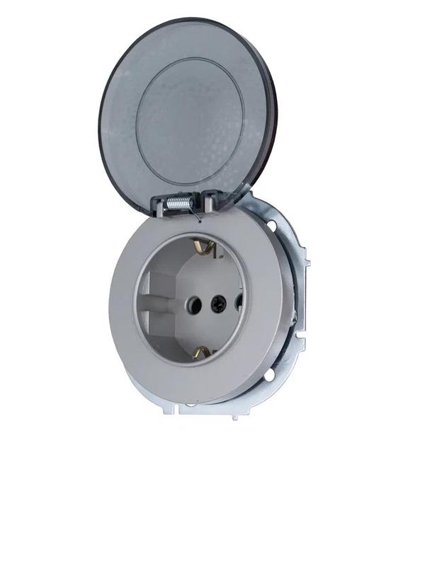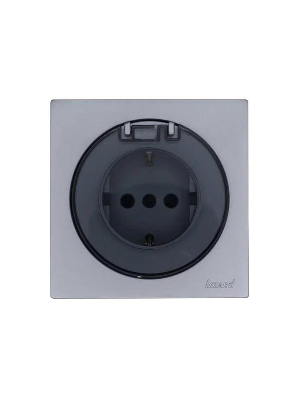 Розетка 1-м СП OSEN с заземл. с крышкой ПБТ механизм сер. матов. LEZARD 743-7488-123B
