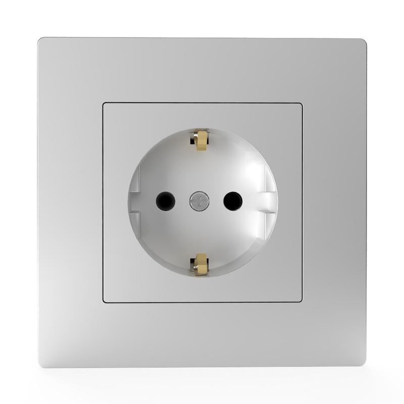 Розетка 1-м СП AtlasDesign 16А IP20 с заземл. защ. шторки в сборе алюм. SchE ATN000344
