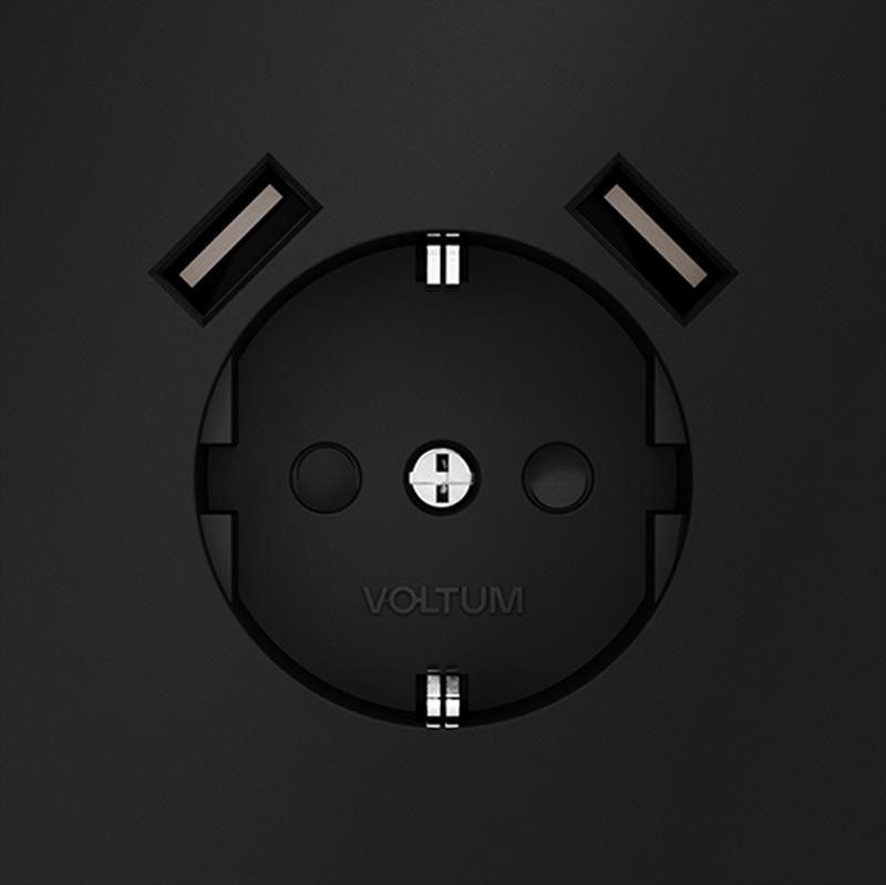 Розетка 1-м СП S70 16А с USB A+A с заземл. защ. шторки механизм черн. матов. Voltum VLS040408