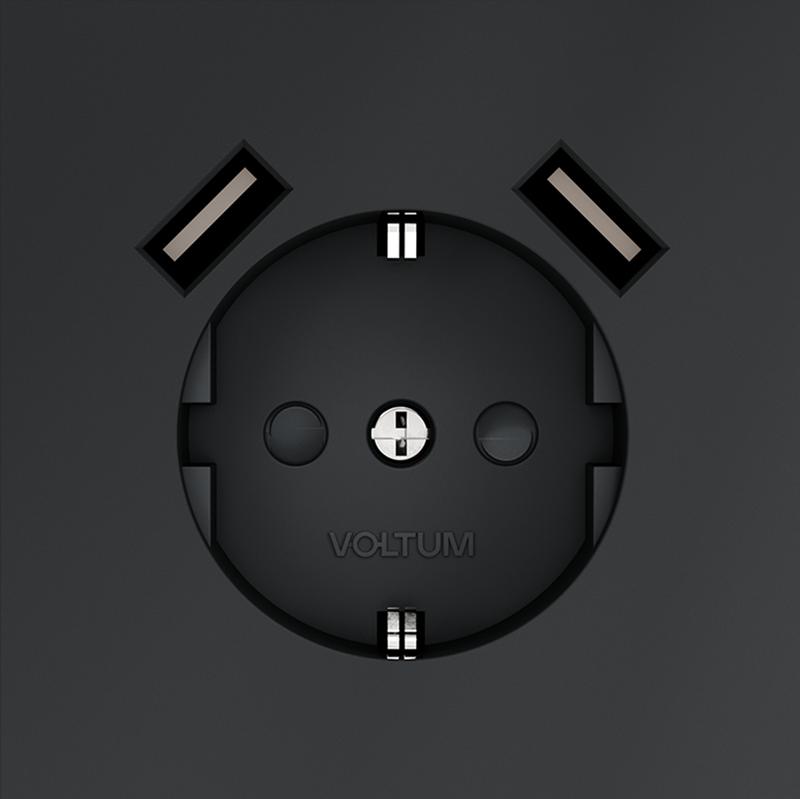 Розетка 1-м СП S70 16А с USB A+A с заземл. защ. шторки механизм черн. матов. Voltum VLS040408 -