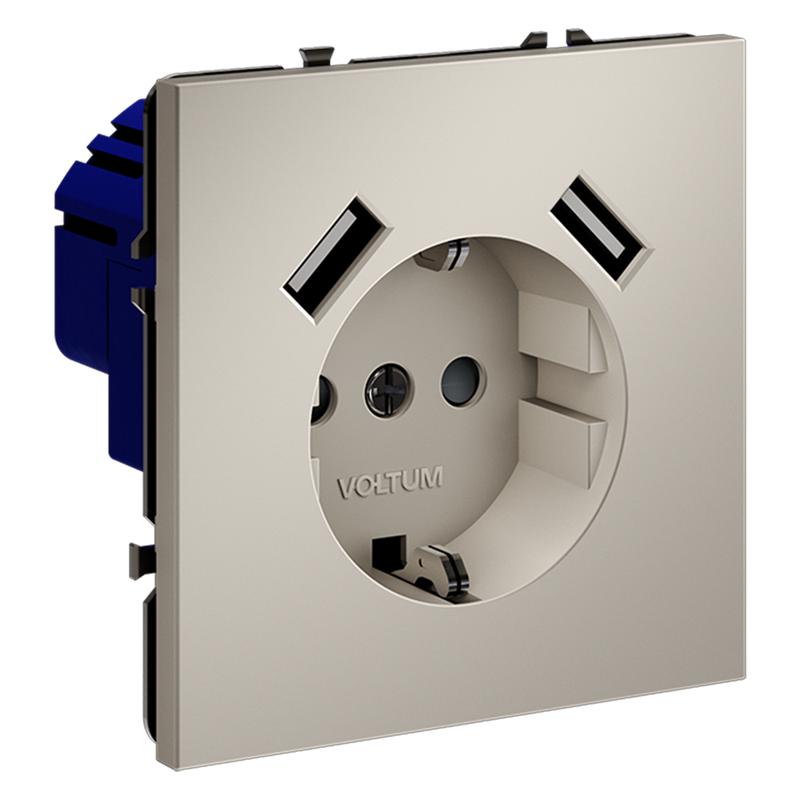 Розетка 1-м СП S70 16А с USB A+A с заземл. защ. шторки механизм кашемир Voltum VLS040403
