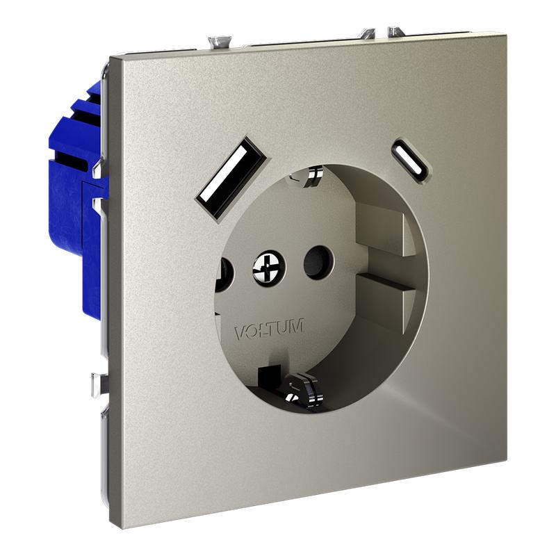 Розетка 1-м СП S70 16А с USB A+С с заземл. защ. шторки механизм шелк Voltum VLS040504