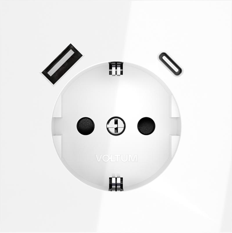 Розетка 1-м СП S70 16А с USB тип A+С механизм с заземл. защ. шторки бел. глянцевый Voltum VLS040501