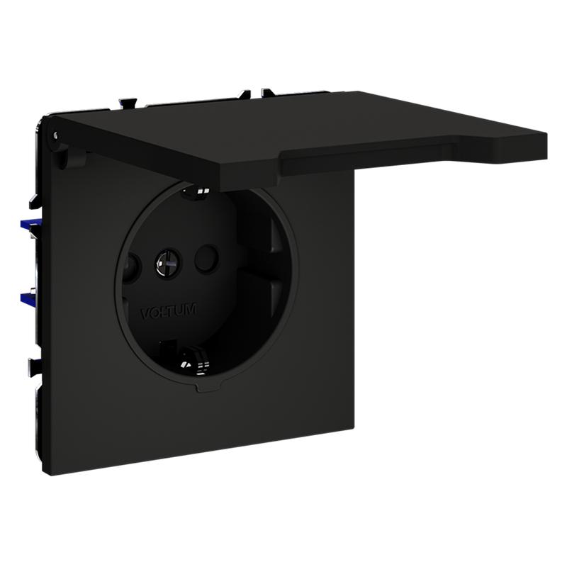Розетка 1-м СП S70 16А с заземл. защ. шторки + крышка механизм черн. матов. Voltum VLS040308