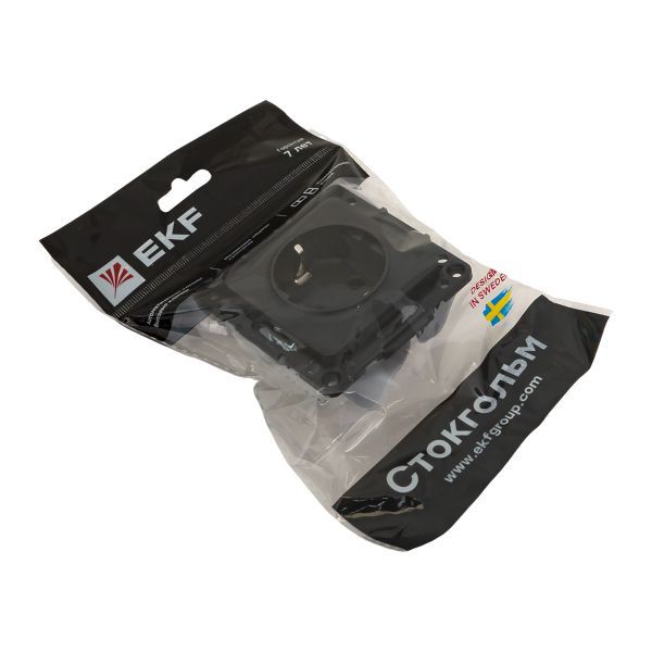 Розетка 1-м СП Стокгольм 16А IP20 с заземл. защ. шторки механизм черн. PROxima EKF EZR16-028-10
