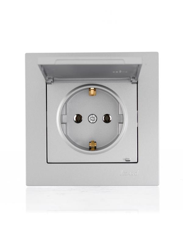 Розетка 1-м СП Vesna с заземл. с крышкой ПБТ механизм платина LEZARD 742-3588-123B