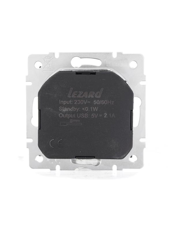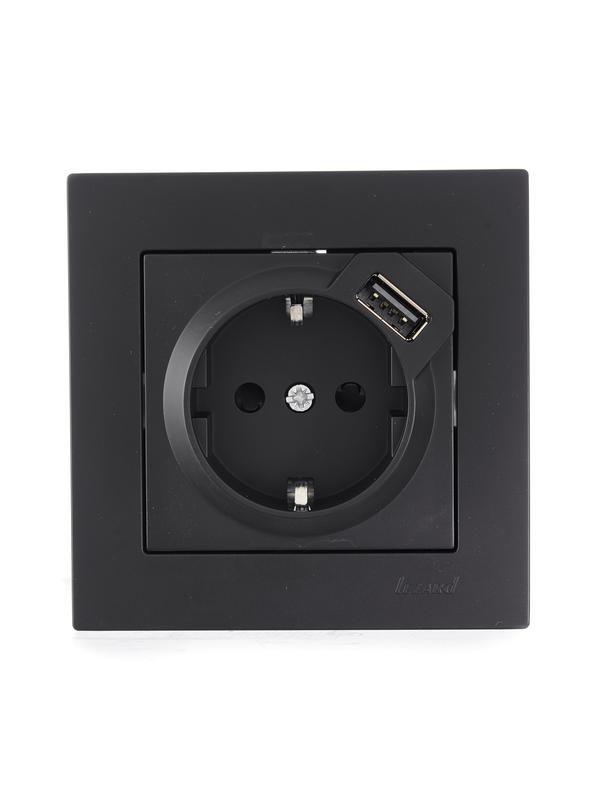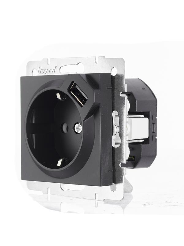 Розетка 1-м СП Vesna с заземл. с заряд. устройством USB механизм черн. бархат LEZARD 742-4288-181 -