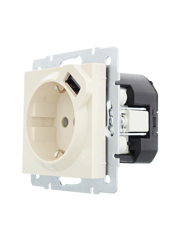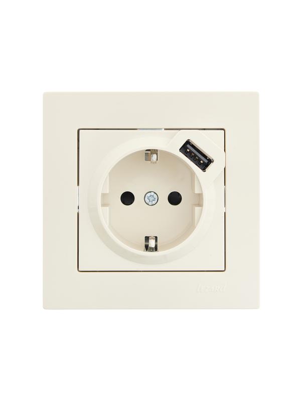 Розетка 1-м СП Vesna с заземл. с заряд. устройством USB механизм крем. LEZARD 742-0388-181