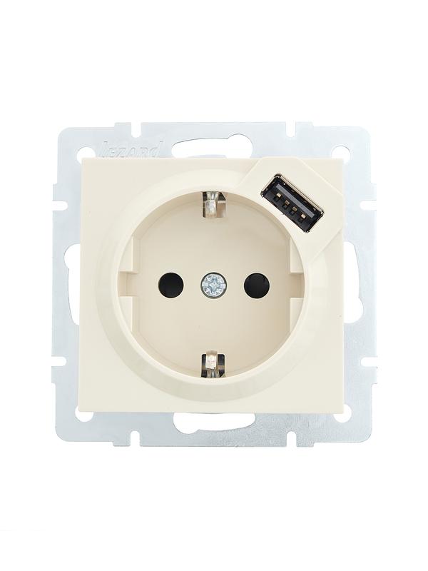 Розетка 1-м СП Vesna с заземл. с заряд. устройством USB механизм крем. LEZARD 742-0388-181 -