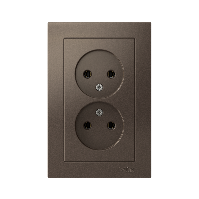 Розетка двойная в сборе Systeme Electric (ранее Schneider Electric) серии AtlasDesign в цвете мокко без заземления и без шторок подходит для сетей 250 В, на ток 16 А. Лицевые детали из качественного ABS-пластика, устойчивого к царапинам и УФ-излучению. Двойная розетка позволяет подключить два устройства в одном месте. Изделие поставляется в комплекте с рамкой того же цвета. Усиленные прямые монтажные лапки для лучшей фиксации механизма в монтажной коробке.