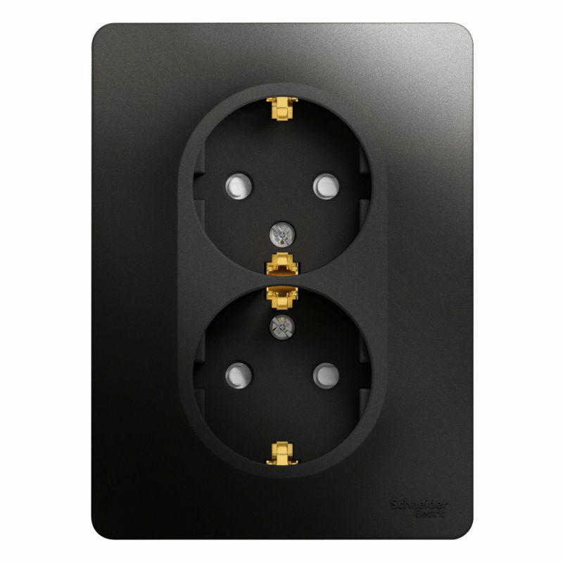 Розетка двойная Systeme Electric (ранее Schneider Electric) серии Glossa (в сборе, цвет антрацит) с заземлением и шторками подходит для сетей 250 В, на ток 16 А. Заземляющий контакт обеспечивает дополнительную защиту от удара электрическим током. При наличии заземления электрический потенциал уходит в землю, защищая человека. Выполнен из материала PС+ASA, стойкого к УФ-излучению и появлению царапин. Двойная розетка позволяет подключить два устройства в одном месте.