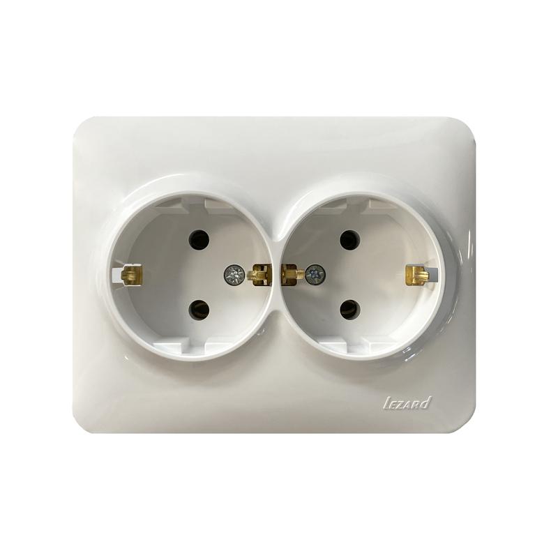 Розетка 2-м Karina Life с заземл. ПБТ бел. LEZARD 708-0200-127B