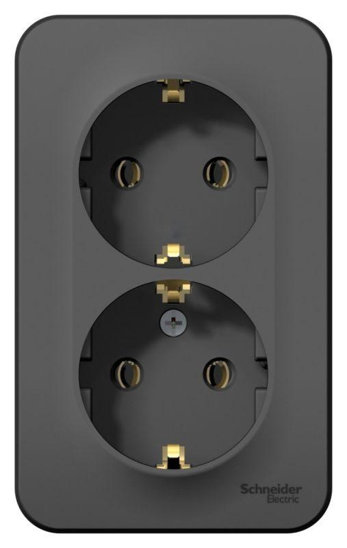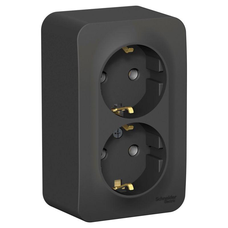 Розетка 2-м ОП Blanca 16А IP20 250В с заземл. без защ. шторок с изолир. пластиной антрацит SE BLNRA010216