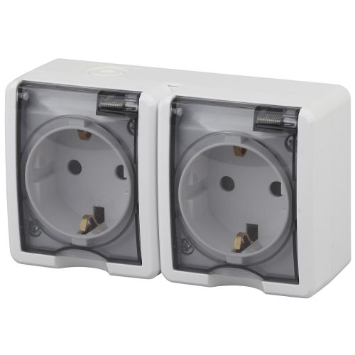 Розетка 2-м ОП Эра Эксперт 11-2403-01 16А IP54 16AX 250В 2х2P+E бел. Эра Б0020716