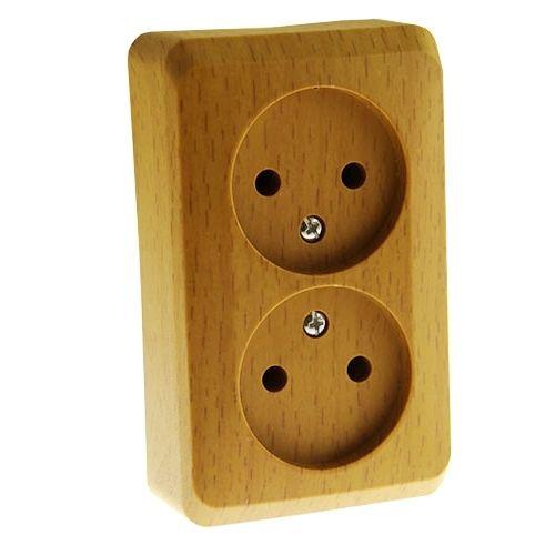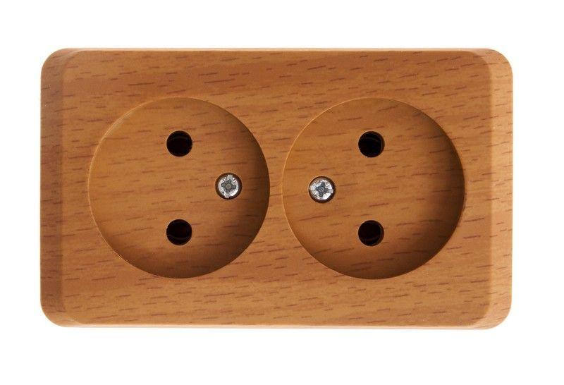 Розетка Systeme Electric (ранее Schneider Electric) ЭТЮД (бук, открытой установки) двухместная, без шторок и заземления предназначена для применения в сетях до 250В, на ток до 16А. Двухместная розетка позволяет подключить два устройства в одном месте. Она проста в установке и удобна в применении. Изделия цвета Бук обладают уникальным рисунком, напоминающим древесный сруб. Сделано в России.