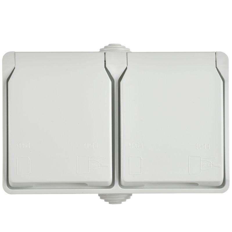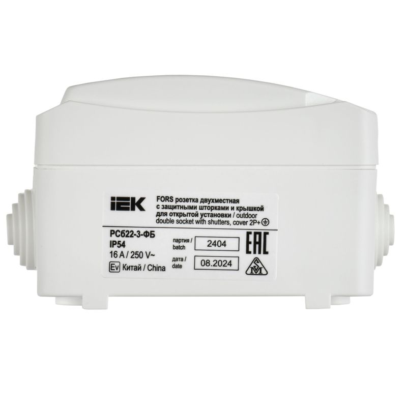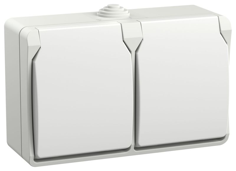 Розетка 2-м ОП Форс РСб22-3-ФБ 16А IP54 с заземл. защ. шторки бел. IEK ERS22-K01-16-54-DC