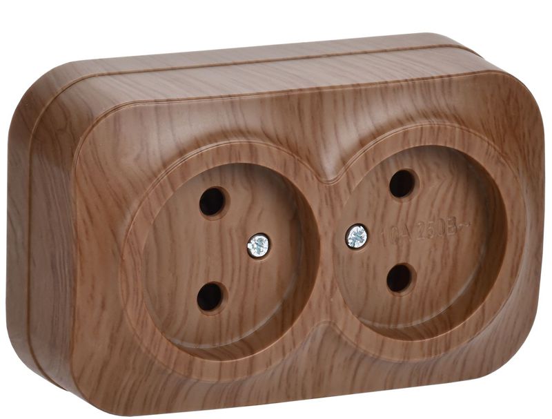 Розетка 2-м ОП 10А IP20 без заземл. сосна IONICH 1438