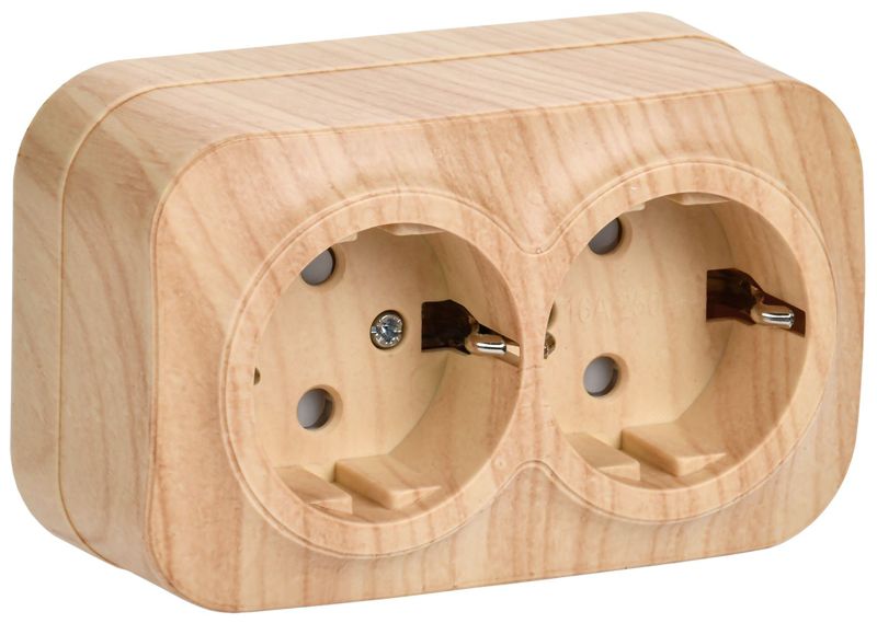 Розетка 2-м ОП GLORY РСш22-3-ХС 16А с заземл. защ. шторки сосна IEK ERH24-K34-16 -