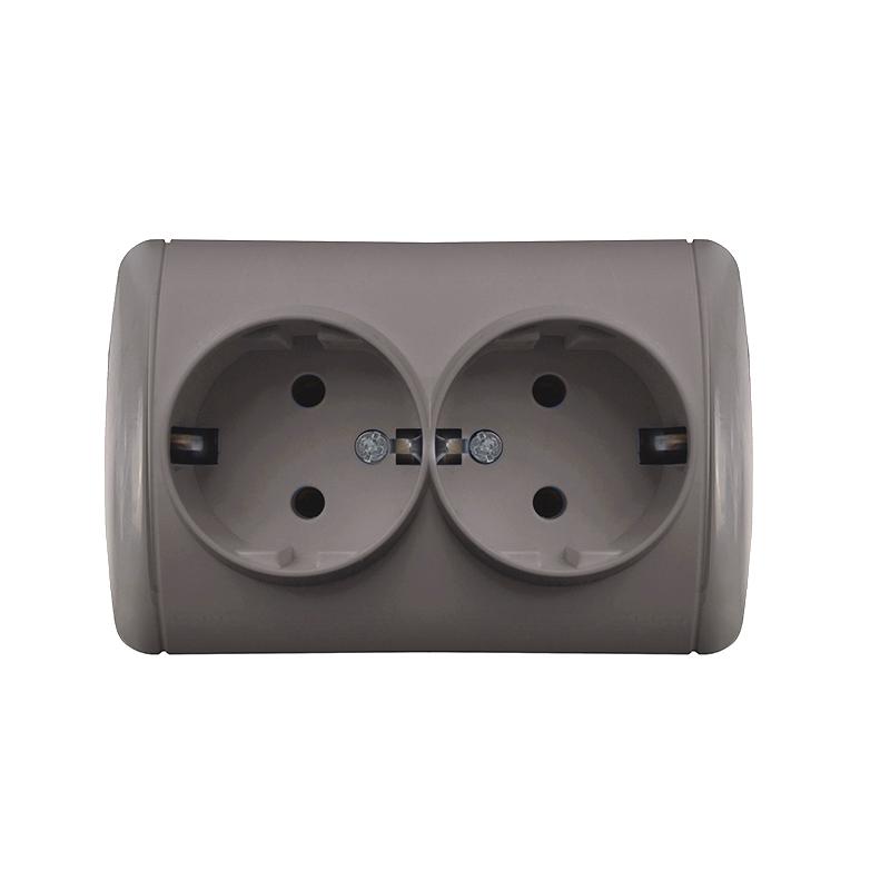 Розетка 2-м ОП Клио 16А IP44 с заземл. сер. UNIVersal К2231-Gr -