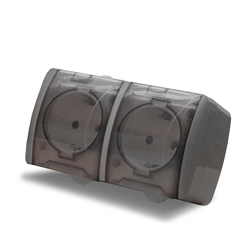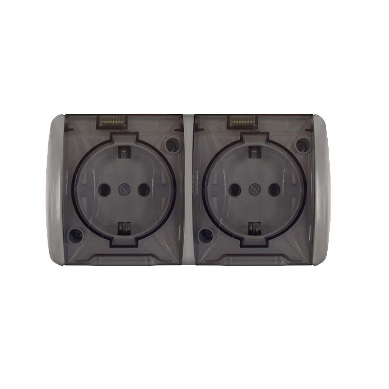 Розетка 2-м ОП Клио 16А IP54 с заземл. с прозр. крышкой сер. UNIVersal К2232-Gr -