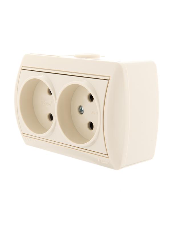 Розетка 2-м ОП Nata 16А IP20 без заземл. керамика крем. LEZARD 710-0300-128