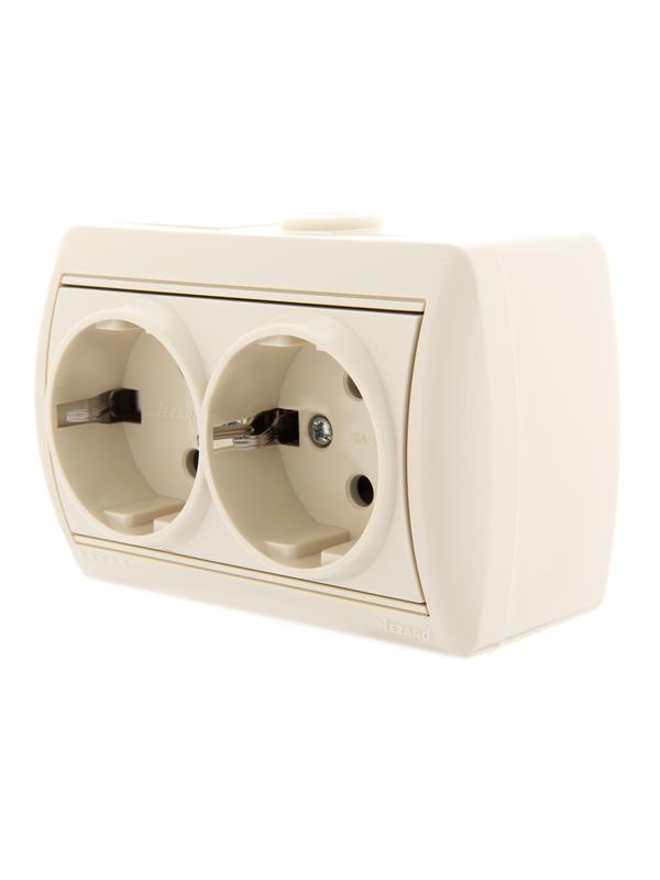 Розетка 2-м ОП Nata 16А IP20 с заземл. керамика крем. LEZARD 710-0300-127