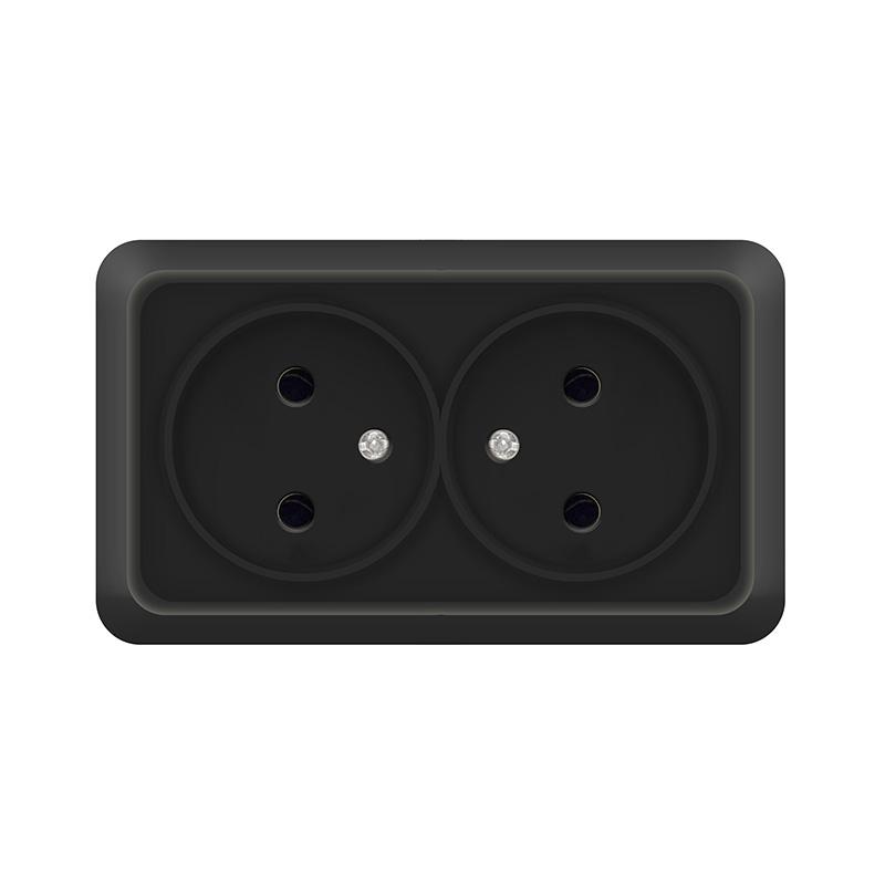 Розетка 2-м ОП Олимп 16А IP20 без заземл. черн. Universal 2215