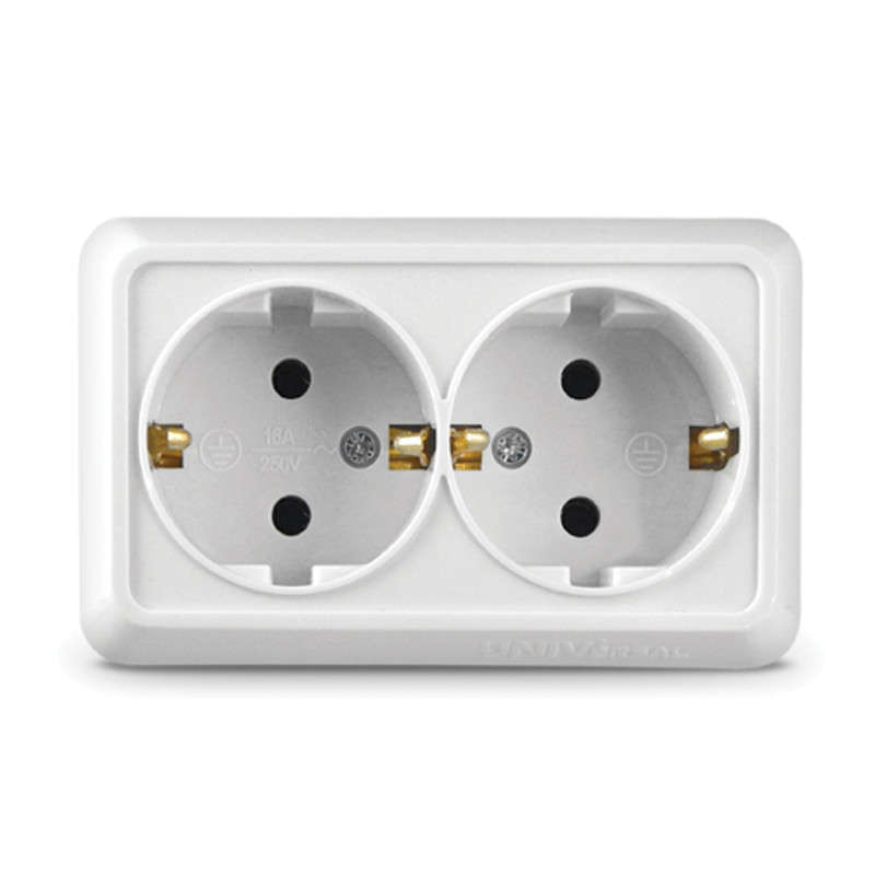 Розетка 2-м ОП Олимп 16А IP20 с заземл. бел. UNIVersal О0128