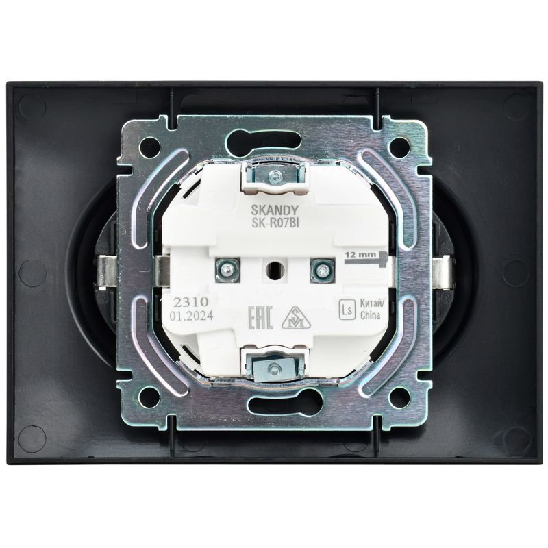 Розетка 2-м SKANDY 16А с заземл. защ. штроки в сборе SK-R07Bl черн. IEK SK-R24-16-K02-F