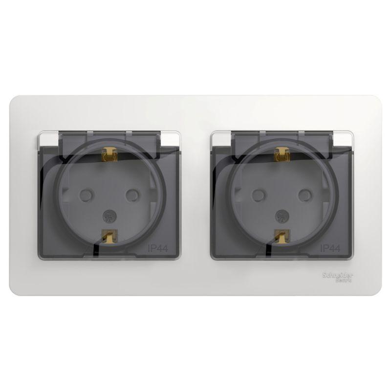 Розетка 2-м СП 2мод. Glossa 16А IP44 с заземл. защ. шторки в сборе бел. SE GSL000147