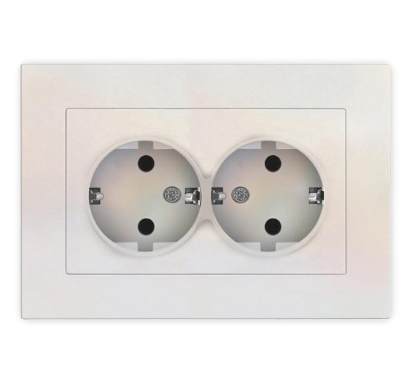 Розетка 2-м СП Афина 16А IP20 с заземл. в сборе жемчуг Universal A0128-OBr
