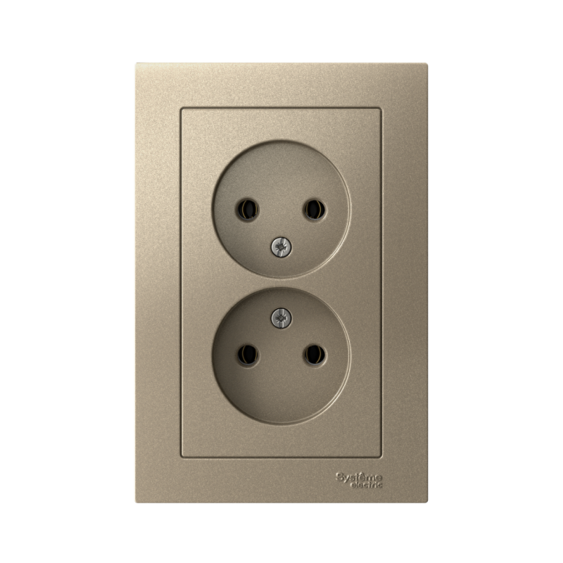 Розетка двойная в сборе Systeme Electric (ранее Schneider Electric) серии AtlasDesign в цвете шампань без заземления и без шторок подходит для сетей 250 В, на ток 16 А. Лицевые детали из качественного ABS-пластика, устойчивого к царапинам и УФ-излучению. Двойная розетка позволяет подключить два устройства в одном месте. Изделие поставляется в комплекте с рамкой того же цвета. Усиленные прямые монтажные лапки для лучшей фиксации механизма в монтажной коробке.